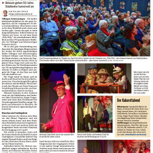 "... Mit viel Witz, Mimik, leidenschaftlicher Spielfreude hatten sie die Lacher im Publikum auf ihrer Seite, dass sie auch noch eine Aufführung mit sehr viel Text problemlos ohne Versprecher stemmten, machte dieses Dinner sehens- und hörenswert..." schreibt Hella Schimkat im Schwarzwälder Boten vom 14.11.