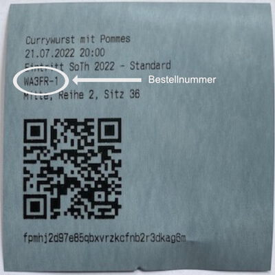 Alle die ihre Eintrittskarte an der Abendkasse gebucht haben bitten wir eine Email an tickets@theater-am-turm.de zu schicken mit den Bestellnummern und dem Konto, auf das die Erstattung überwiesen werden soll. Die Bestellnummer steht in der vierten Reihe des Tickets. Siehe nebenstehendes Bild.