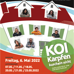 Die Premiere unseres Famiilienstücks "Koi-Karpfen kuscheln nicht" war ein voller Erfolg. Mit viel Tempo und Spielfreude riss das Ensemble und ganz besonders Rebecca, Anny, Benny und Charly das Premierenpublikum mit. << Ein Stück mit viel Sprachwitz mit gut herausgearbeiteten Charakteren. Ein unterhaltsamer Krimi, der zeigt, wie Freundschaften über unterschiedliche Schichten trotz Konflikten möglich sind. >> schreibt Renate Zährl im Schwarzwälder Boten vom 9.5.2022