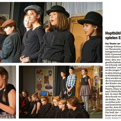 Dreimal präsentierten die jungen Schauspielerinnen und Schauspieler des Hoptbühl Gymnasiums ihr Stück "Klaus im Schrank" von Erich Kästner im Theater am Turm, unterstützt von den zahlreichen Mitwirkenden vor unter hinter der Bühne. Lesen Sie den Beitrag von Rüdiger Fein im Südkurier.