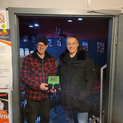 Eine tolle Spende in Aussicht gestellt hatte der Lions-Club VS-Mitte Anfang Dezember dem durch die Coronakrise heftig gebeutelten Theater am Turm. Aber wenn eine Pandemie auch noch mit einer Naturkatastrophe wie im Juli 2021 in der Süd Eifel zusammenfällt, dann erscheinen die eigenen Sorgen angesichts solch einer Katastrophe, die 134 Menschenleben kostete, gering. Da ist es dann um so schöner, wenn auch ein kleiner Theaterverein einem Mann mit großem Herz etwas Unterstützung geben kann. Theo Huber aus Bräunlingen sammelt unter dem Motto „Nit quatsche, mache!“ Spenden für die Hochwasseropfer in der Süd Eifel und fährt wöchentlich in das immer noch gezeichnete Gebiet, um selbst beim Aufräumen mit anzupacken. Im Rahmen einer solchen Aktion sammelte das Theater währen der letzten Aufführung des Stückes Hirn! zum Jahresende 2021 Spenden von den Besuchern. Jetzt wurde die Kasse „geschlachtet“ und es kamen sage und schreibe 218,28 Euro zusammen, die der zweite Vorsitzende Jörg-Dieter Kluge an Theo Huber überreichen durfte.